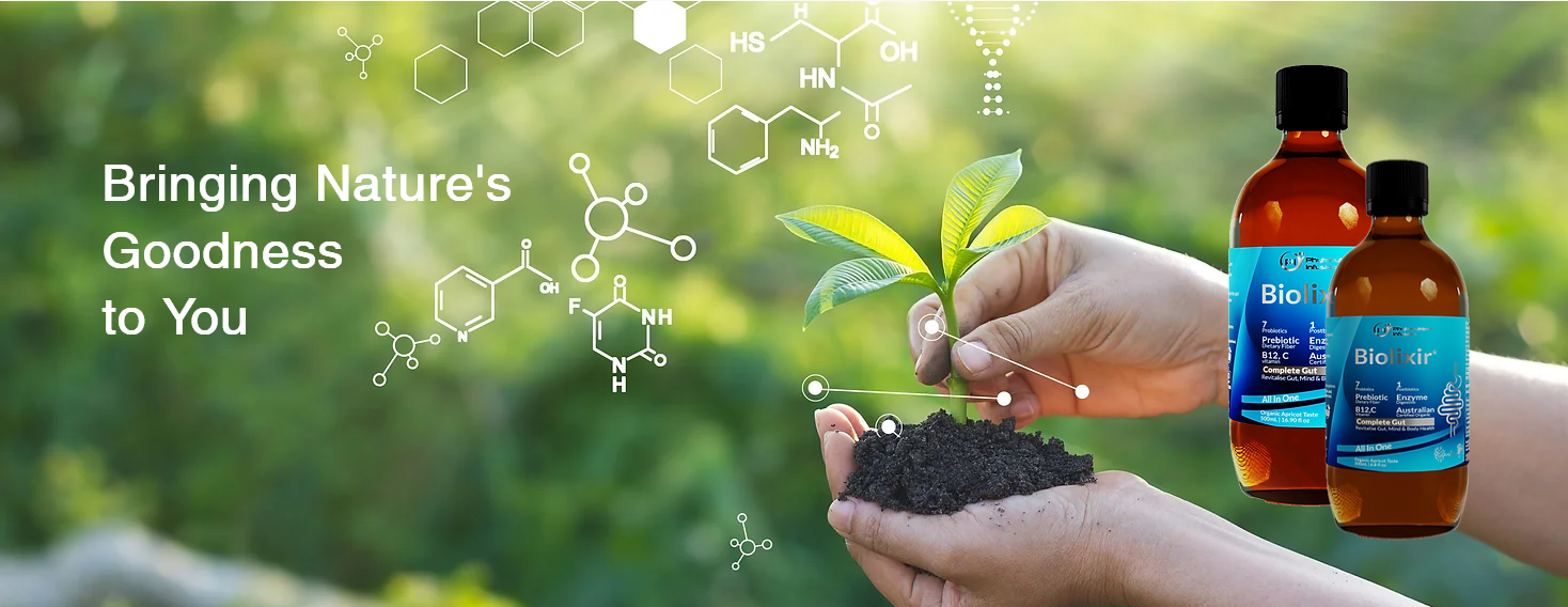 with BIOLIXIR, a scientifically formulated blend of prebiotics, probiotics, and postbiotics that give digestive health and